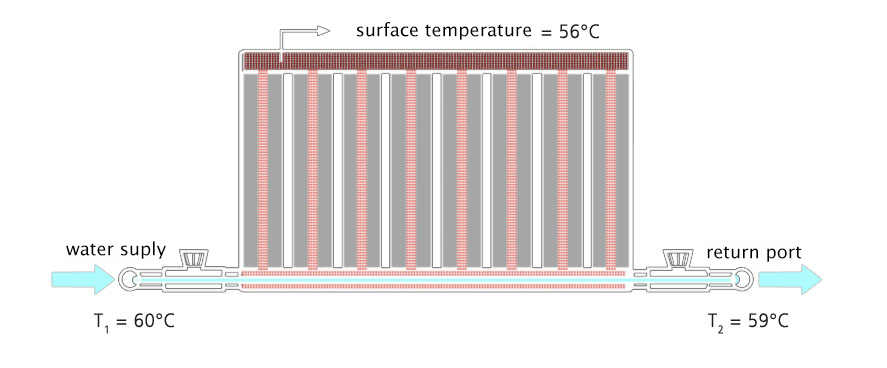 In contrast to conventional radiators having a heating surface that water flows through, this innovative radiator only needs a single perfused pipe to heat up the entire heating surface.