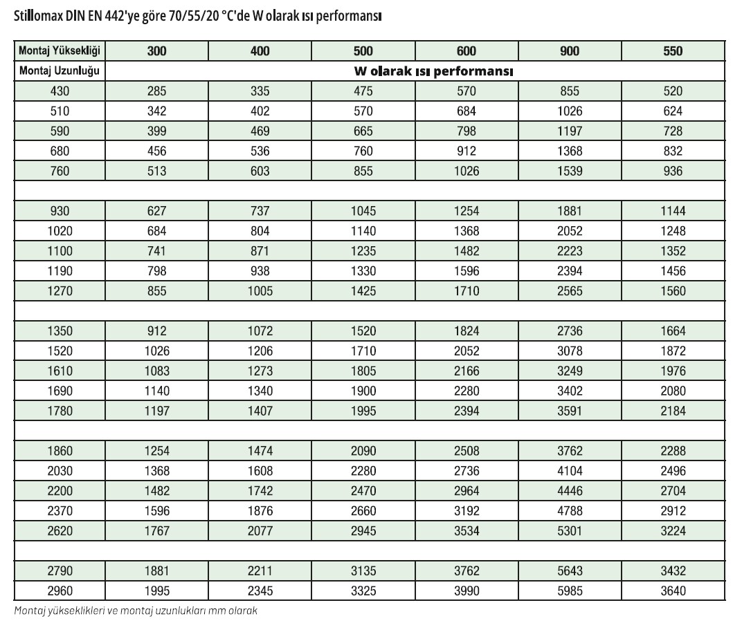 ProPRO modelimiz, 21 ve 22 tipi standart radyatörlerin karşılaştırılabilir yükseklik/uzunlukta ısı çıkışını aşmaktadır.
